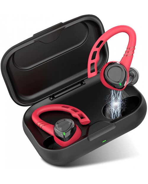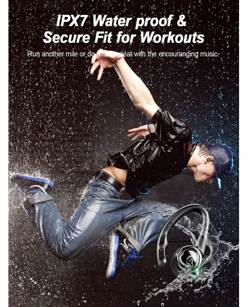 Wireless Earbud, Bluetooth Headphones 5.1 Sport Unique Earhooks, Wireless Earphones in Ear Noise Cancelling Mic Stereo Bass, 35H Playtime IPX7 Waterproof Headset for Workout Running Gym Android iOS